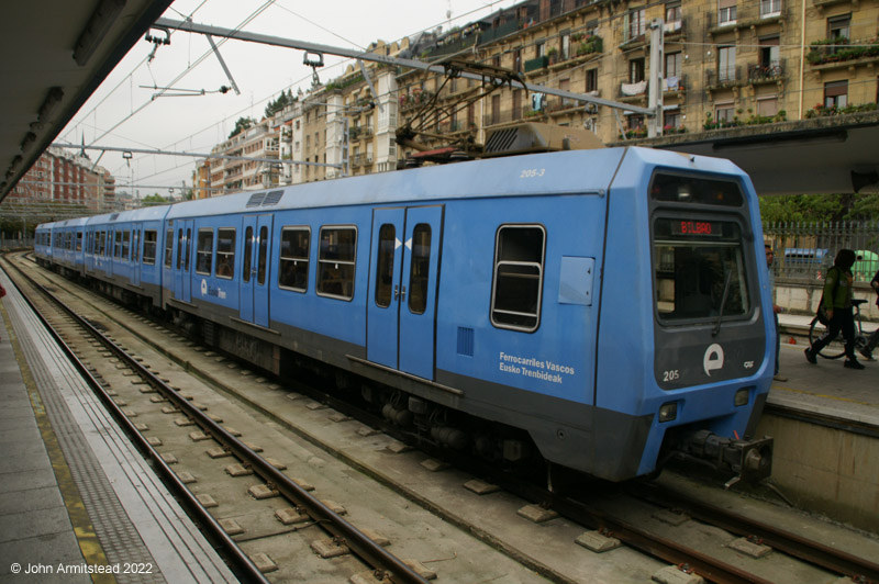 Basque Railways electric unit 205 at San Sebastián (Amara), after arriving with the 14.57 from Bilbao on 18 September 2008. |